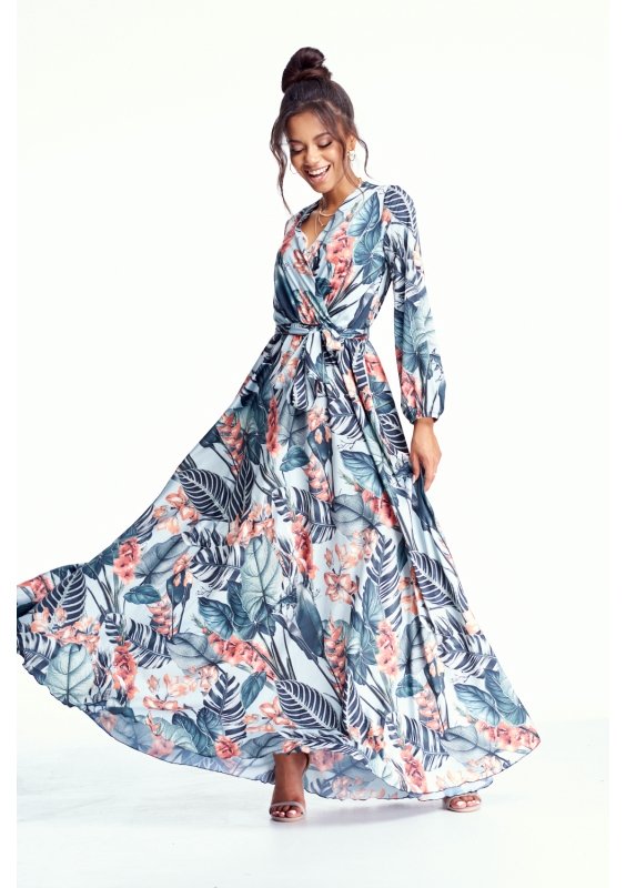 Mesi wybrała delikatne kwiaty w pastelowych kolorach w wydaniu maksi. Wygodna i urocza sukienka to świetny wybór na imprezy, ale też do codziennych stylizacji.