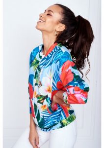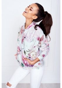 Alternatywą dla niezastąpionej kurtki jeansowej będzie bomberka w kwiatowy wzór. Cudowne pastelowe kolory, klasyczny krój kurtki i ten deseń sprawią, że ta kurtka odmieni nawet najzwyklejszą stylizację.