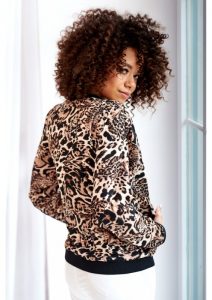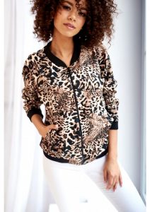 Wspominałam już, że bomberka to kurtka idealna do wielu stylizacji? A co powiecie na połączenie tego najmodniejszego kroju z panterką, która tej wiosny również jest numerem 1! Tej kurtki nie sposób nie kochać. Sprawdzi się zawsze i na każdą okazję! Będzie idealna do spodni, spódnicy na przykład ołówkowej czy do sukienki. Możesz ją stylizować na elegancko lub na sportowo. W każdej wersji będzie wyglądała świetnie!