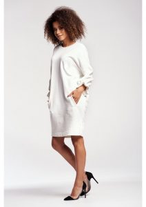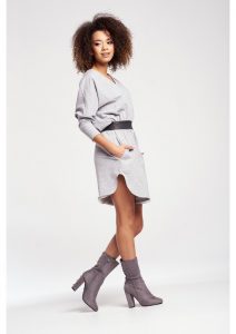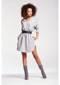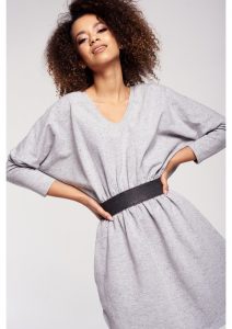 Skoro jeszcze mamy chłodniejsze dni to może postawię na bawełnianą sukienkę w klasycznej szarości, która będzie świetną bazą do wielu stylizacji. Niestandardowy krój sukienki pozwala