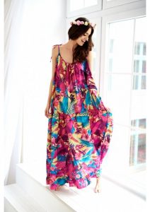 A na koniec moje ulubione maksi sukienki o bardzo fajnej formie. W takiej odsłonie będzie Ci bardzo wygodnie. Szeroka, luźna sukienka, cudowne wzory, fantastyczna falbana na dole i ramiączka, które można regulować, dzięki czemu dekolt na plecach jest raz większy, raz mniejszy. Wszystko zależy od tego ile chcesz odsłonić. To idealna sukienka na wakacje!