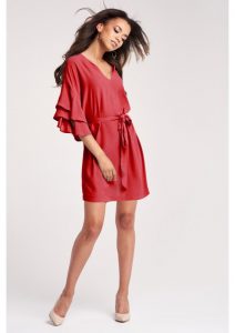 Jeśli szukasz bardzo eleganckiej sukienki to czerwone cudo to istna gratka dla każdej klepsydry. Wysmuklający sylwetkę ołówkowy fason, do tego cudowny dekolt i rozkloszowane rękawy.
