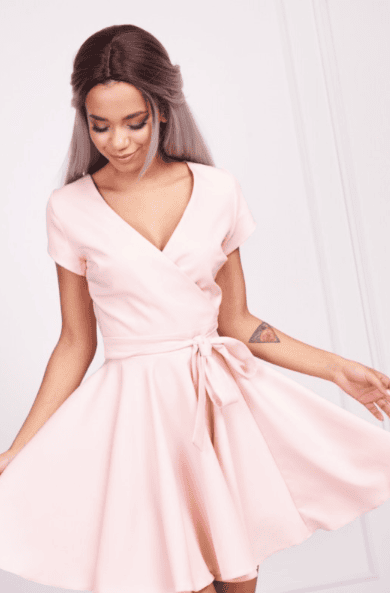 Do tego wszystkiego piękny dekolt. U Pań z dużym biustem pięknie go wyeksponuje, a u Pań z mniejszym zarysuje. Jednocześnie dekolt V wydłuża optycznie szyje, a co za tym idzie całą sylwetkę.  Delikatne rękawki to kolejny akcent naszej KLASYKI! Można je lubić lub nie, ale naszym zdaniem to właśnie one dopełniają tutaj całość. Bez nich sukienka była nieco bez wyrazu.