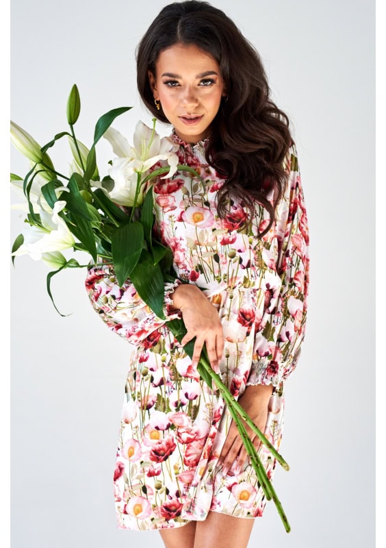 Monika wybrała romantyczną sukienkę mini o delikatnej tkaninie z półgolfem. Musze przyznać, że wygląda w niej obłędnie. Do tego cała sceneria zdjęcia – coś wspaniałego. Największym atutem tej sukienki jest bardzo wiosenny nadruk w kwiaty, który sprawia, że całość jest bardzo delikatna i świeża. Mi się bardzo podoba, a Wam?