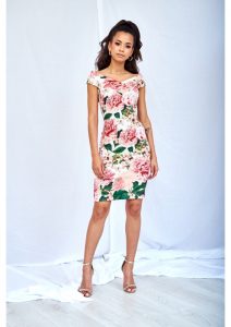 Najpierw pomyślałam o pięknych kwiatach, w końcu w tym sezonie ten motyw jest numerem 1! Dopasowana sukienka o długości midi z cudownym wzorem będzie świetnie się komponowała z sandałkami i żakietem. Bardzo podoba mi się w tym fasonie układ rękawów, które lekko opadają na ramiona, ale nie pokazują za dużo. Całość wygląda bardzo elegancko, prawda?