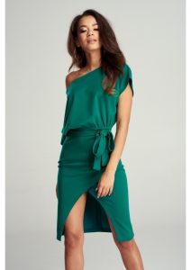 Ta sukienka to prawdziwy sztos. Długość midi, seksowny rozporek i kimonowa góra, którą można nosić na wiele sposobów. Sukienka przepięknie prezentuje się z wiązanym paskiem w talii. Taki wybór będzie idealny na bardzo wiele okazji.