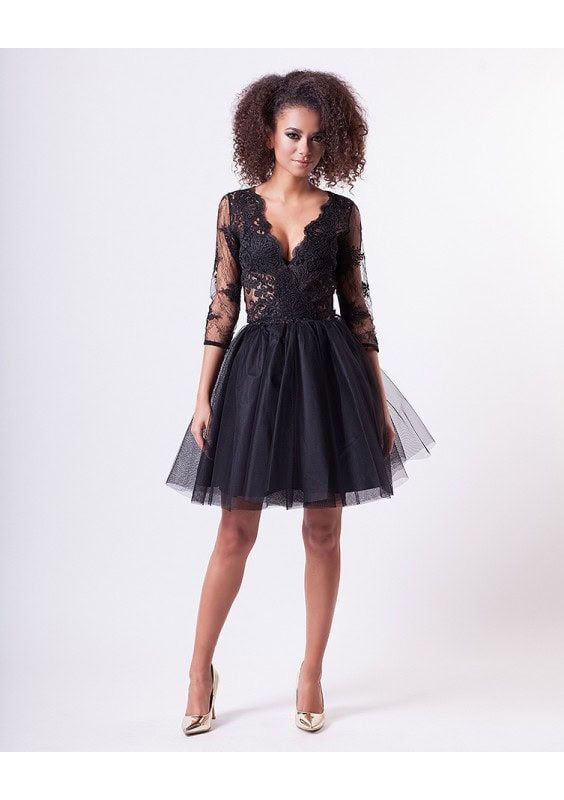 Tego typu sukienki to prawdziwy HIT sezonu. Bardzo elegancka koronkowa góra w piękny sposób eksponuje biust, dodając całości smaczku. Dół sukienki jest mocno rozkloszowany i wykonany ze sztywnego tiulu wraz z podszewką, dzięki czemu świetnie sprawdzi się w tańcu. Czyli, najpierw kolacja a później impreza?